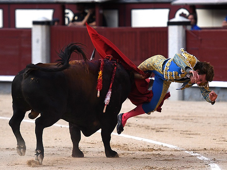 Entera desprendida tapando la cara y perdiendo la muleta y, a pesar de todo ello, oreja en Madrid quizás porque el público seguía sobrecogido por la cornada de caballo de Román en el toro anterior.