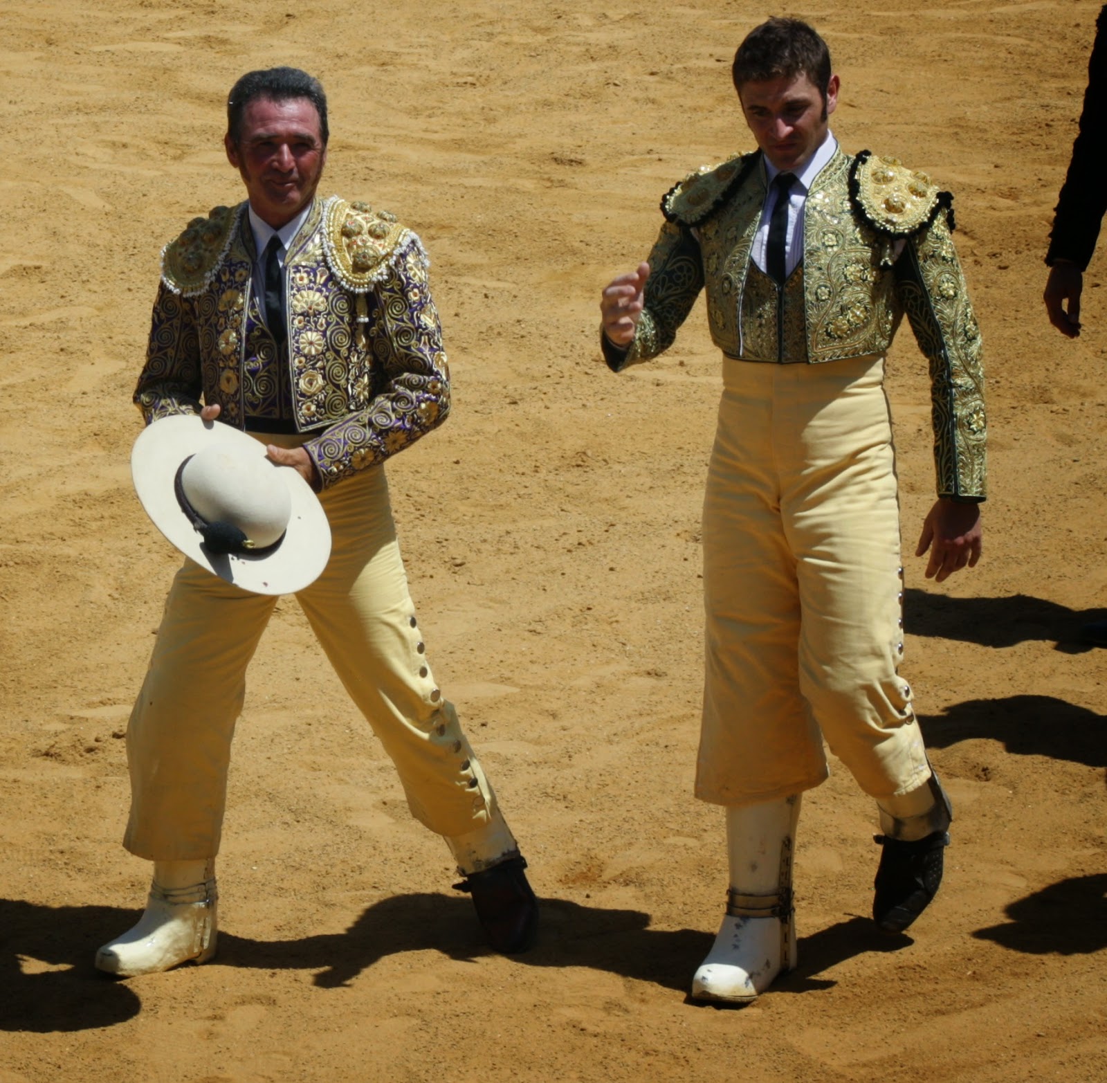 Mucha atención al picador francés Gabin Rehabi, un valiente que hace honor a la chaquetilla de oro que viste. En primer lugar, observen que si marra el puyazo, no rectifica sino que levanta el palo como les gusta a los franceses -con el peligro que conlleva-. En segundo lugar, se va al platillo a buscar al toro para picarlo, lo que le costará una espectacular caída. Al picador que pasa la raya y va a buscar al toro hay que aplaudirle, eso de pitarlo es una absurdidad -la raya la inventaron los picadores para protegerse, saltársela como Rehabi es de valientes-.