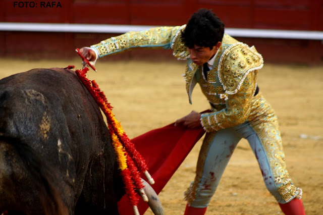 Se equivoca en la suerte contraria, vean cómo el novillo lo aprieta, pero deja una casi entera arriba: