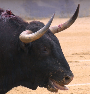 Su segundo era negro azabache, ojalado, bragado meano corrido, axiblanco, muy serio, enmorrillado, alto y apretado de carnes. Un toro: